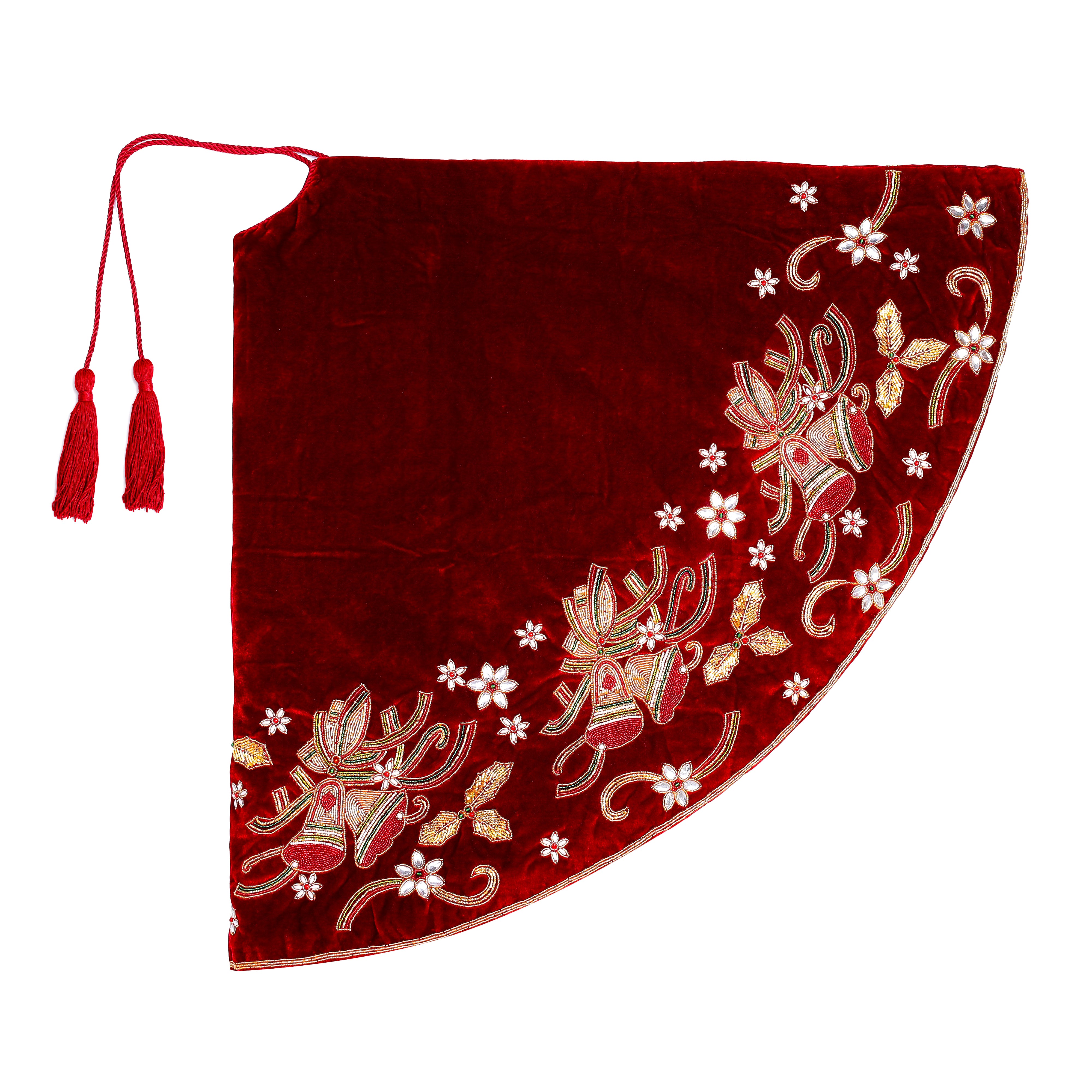 Christmas Bells Embroided Red Velvet Christmas Tree Skirt